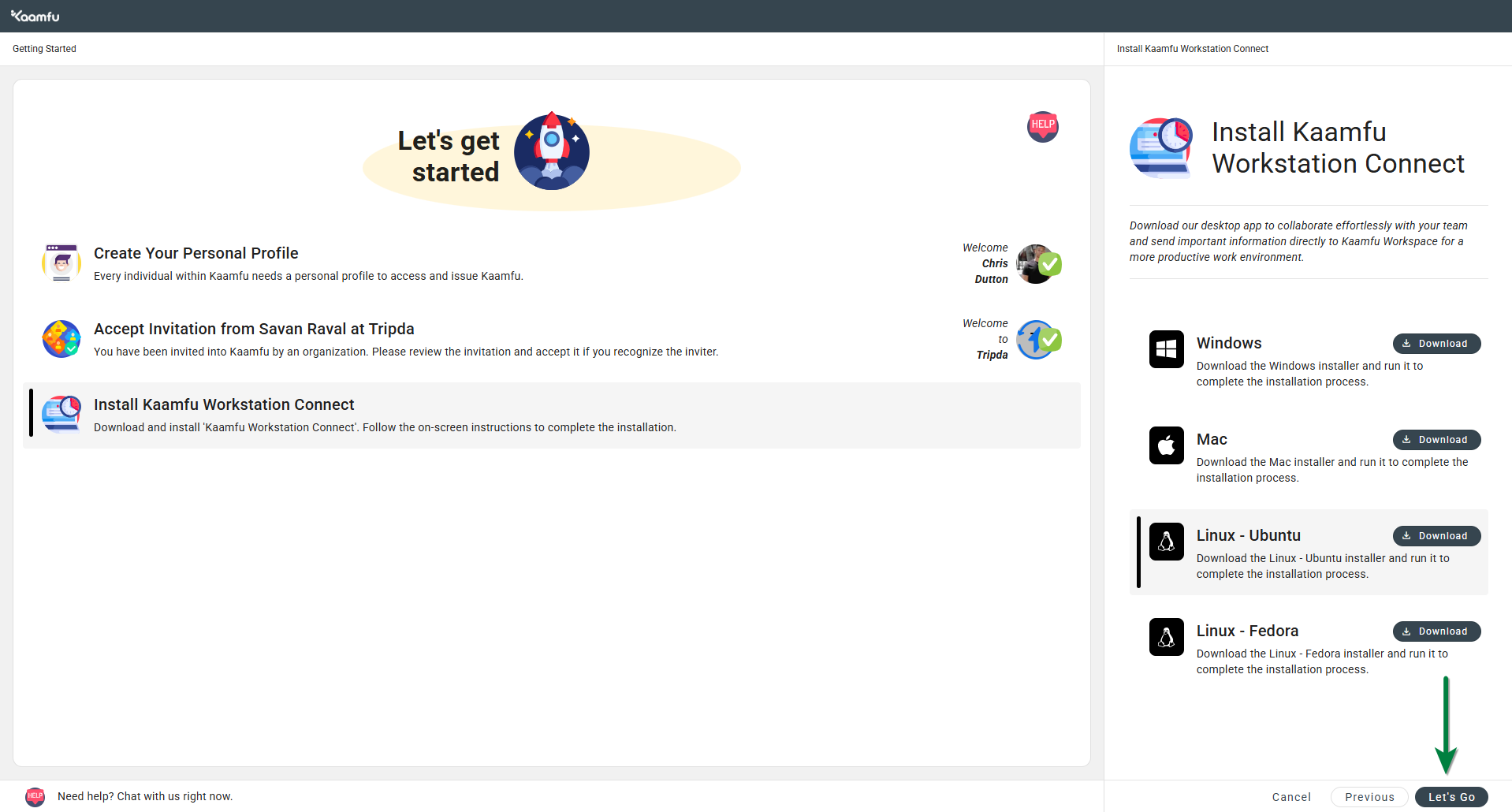 If you’ve already logged in and skipped downloading the Workstation Connect application during setup, you can still download it anytime from the Kaamfu Web App.