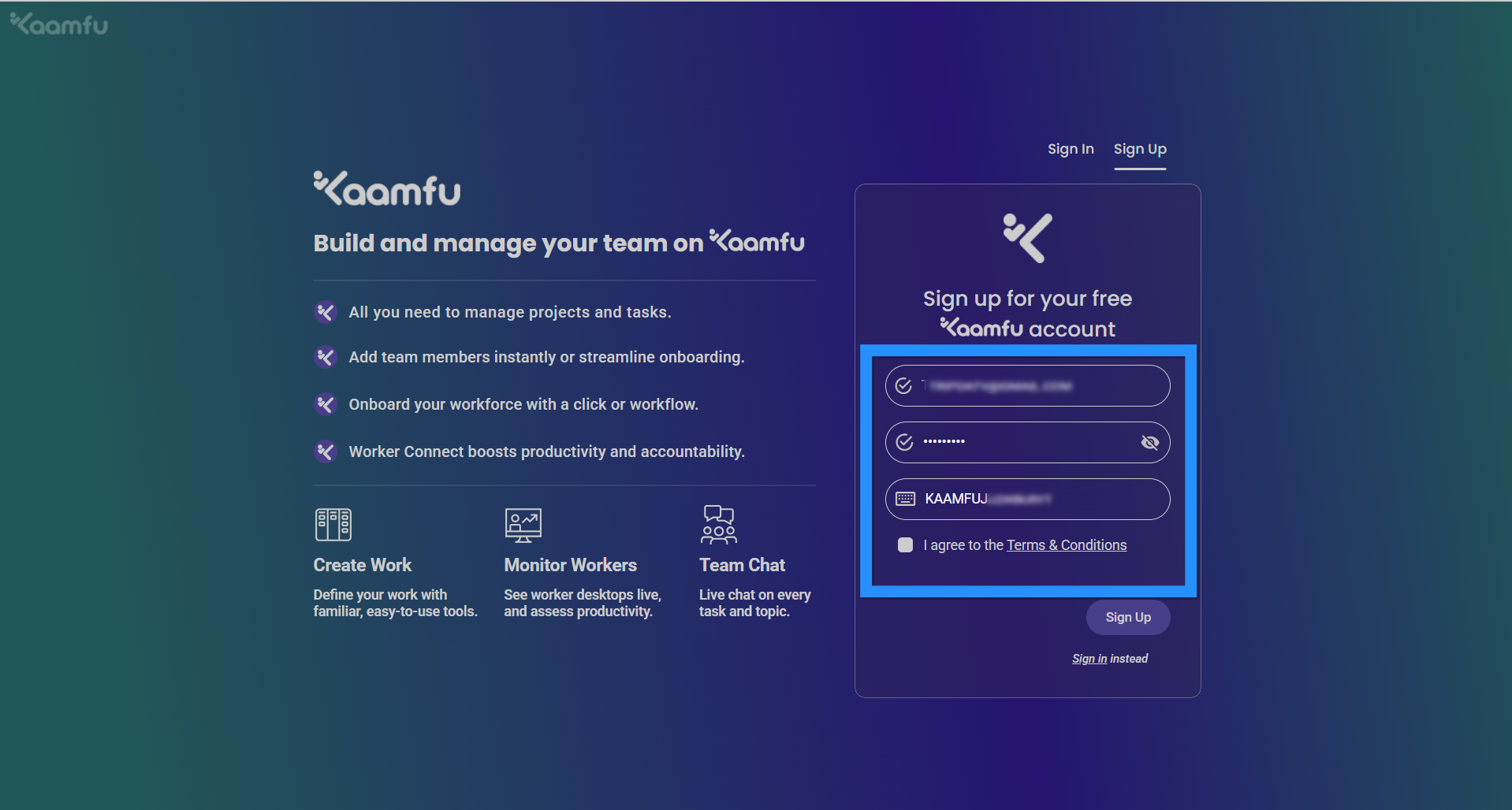 Learn how to sign up, verify your account, and install the Kaamfu Workstation Connect application on your desktop.