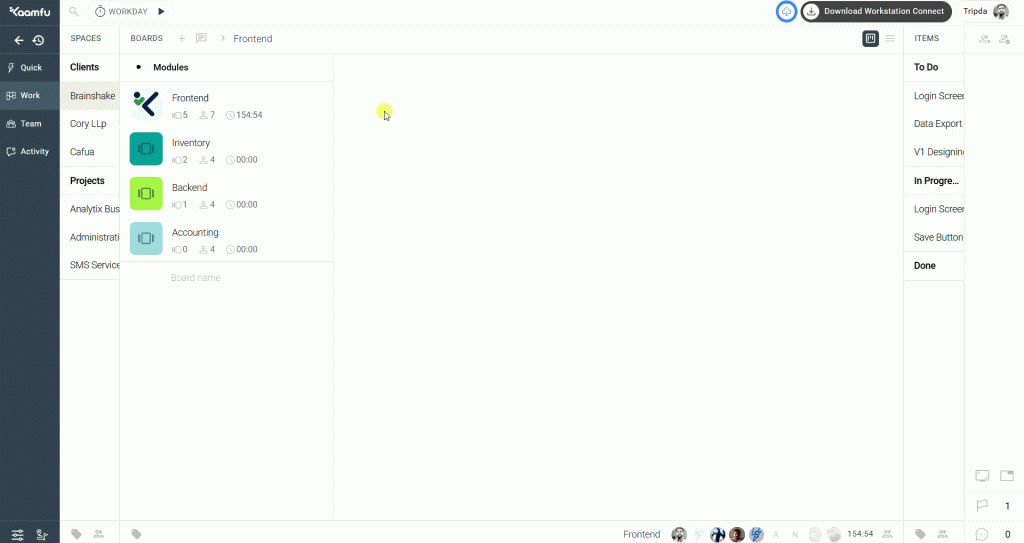 Effective communication is central to productivity. Kaamfu’s Conversation Panel is built for contextual chats, ensuring that every discussion stays linked to the right item, task, or project. This eliminates scattered communication and keeps collaboration clear.