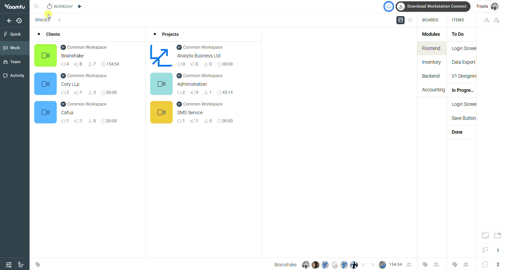 The Quick Actions menu in Kaamfu allows Owners, Account Admins, and Space Admins to create tasks instantly without navigating through multiple screens. This feature is designed to save time and streamline task assignment.