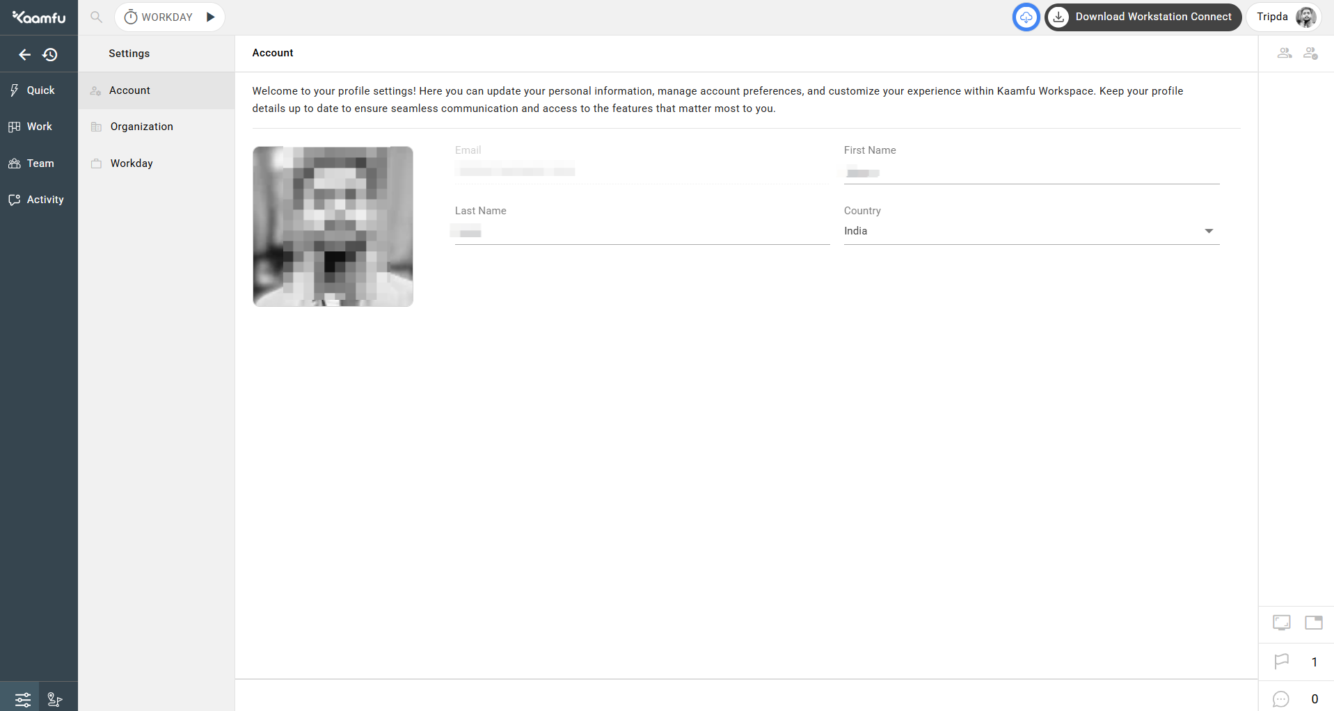 When you sign up with Kaamfu, your basic information is fetched during the process. Based on your initial input, Kaamfu creates your profile with details like your name, email address, and country. However, if you wish to change these details at any point of time, you can do that in just a few steps when you’re logged in.