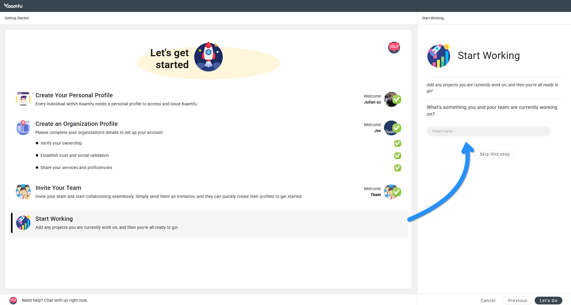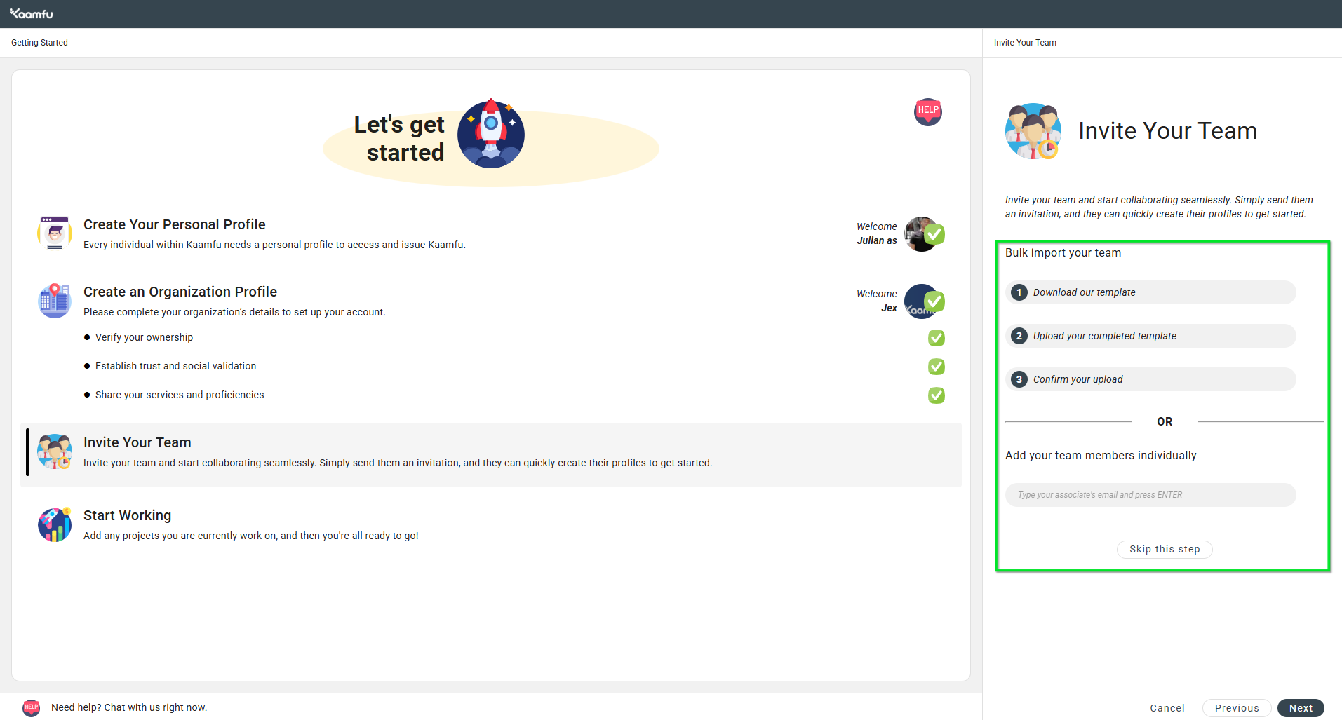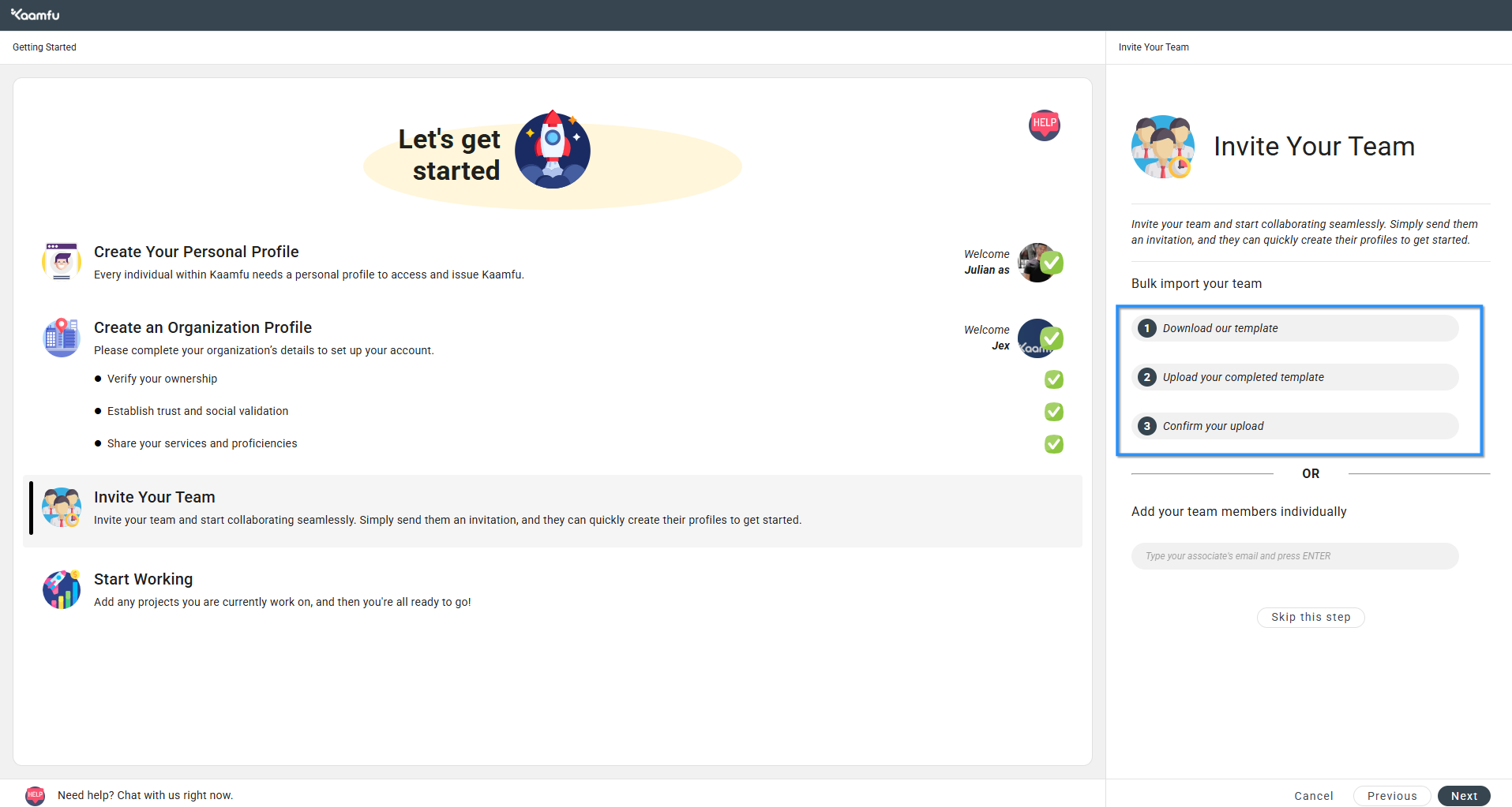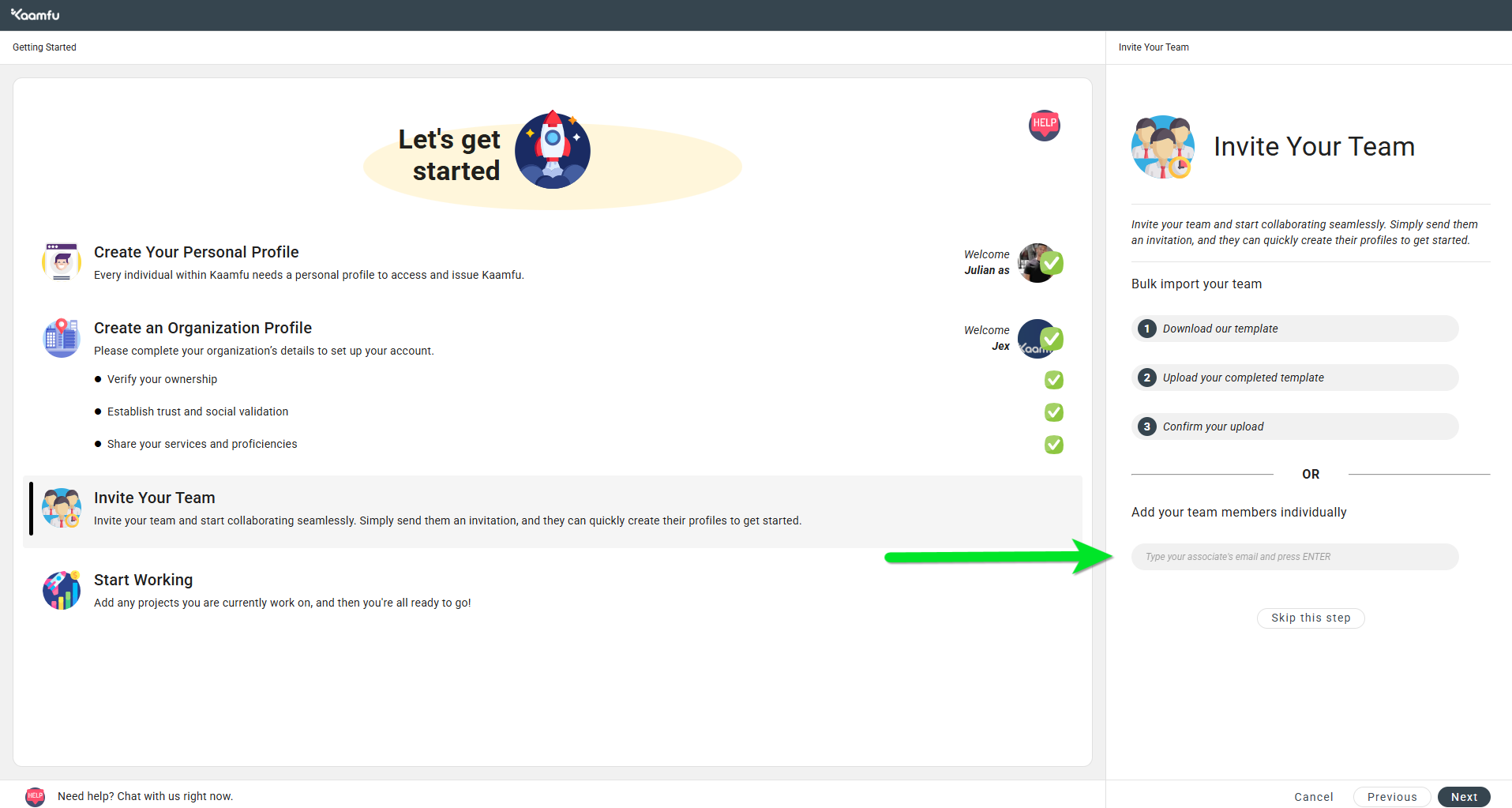 - You have the option to onboard teammates immediately or later.