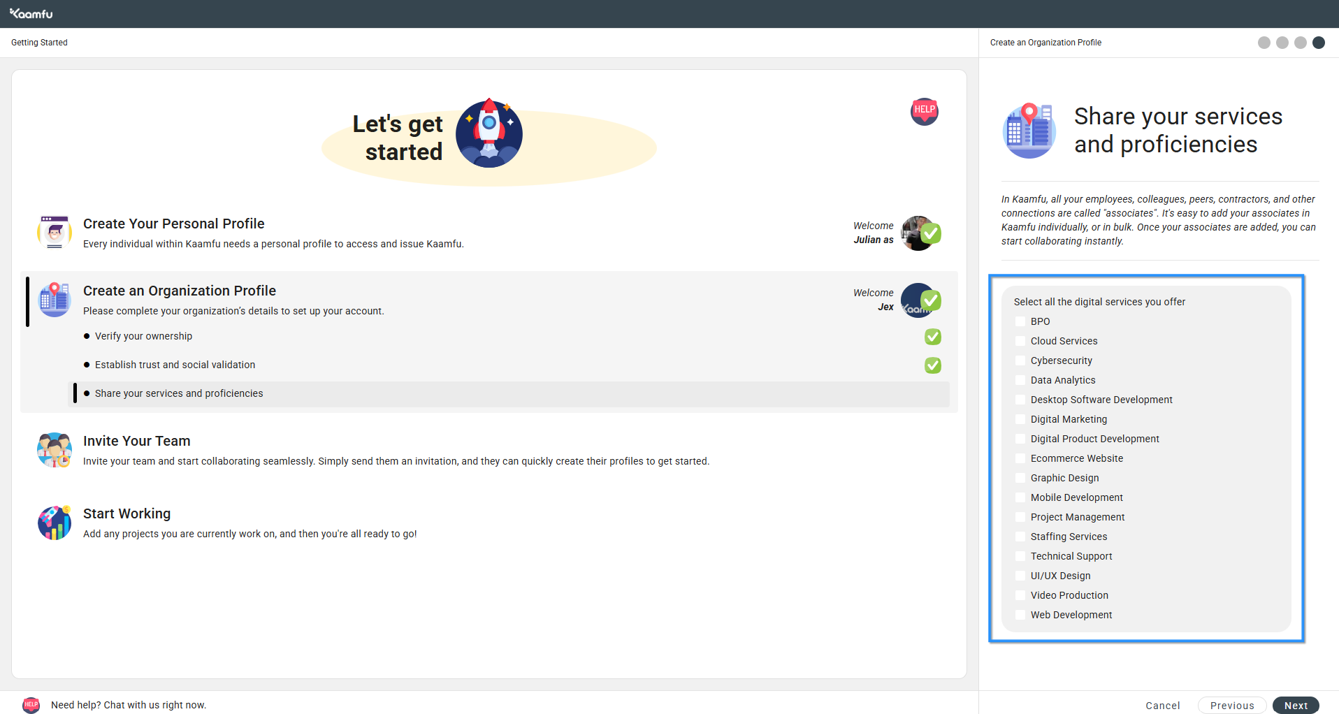 - Setting up personal and organization profiles