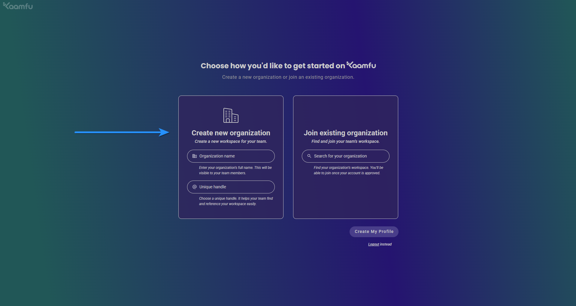 - New users who want to create a fresh Kaamfu organization.