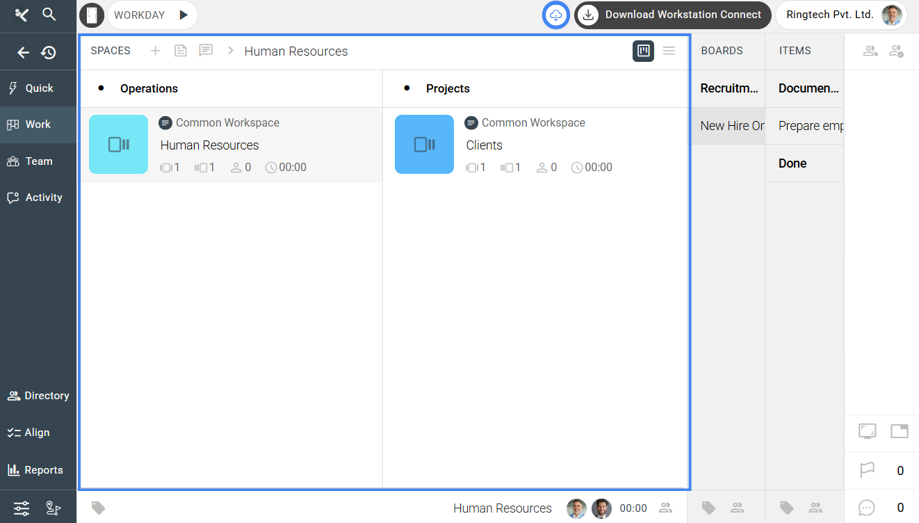 By anchoring work to clearly defined Spaces, teams ensure smoother collaboration and accurate tracking of tasks and time.