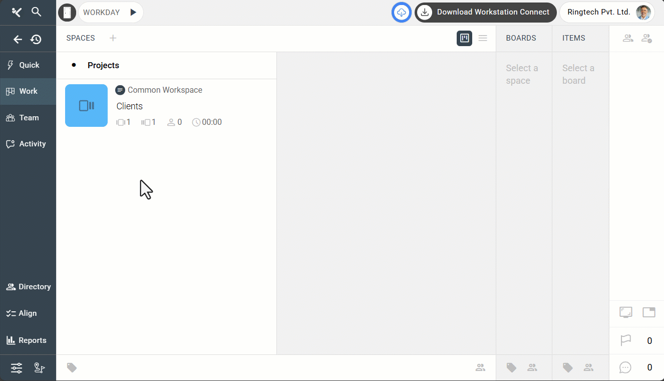 Together, these sub-panels make sure work flows from strategy to execution without confusion. This hierarchy is also critical because Kaamfu’s time tracking feature works only at the Item level. That means efficient setup of Spaces, Boards, and Items directly impacts your ability to measure productivity—one of Kaamfu’s biggest advantages.
