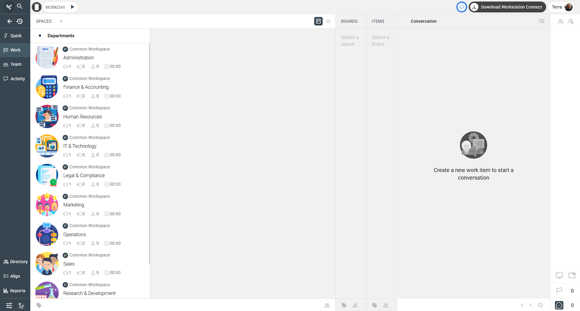 • Pre-created Spaces (Admin, Sales, HR, etc.).