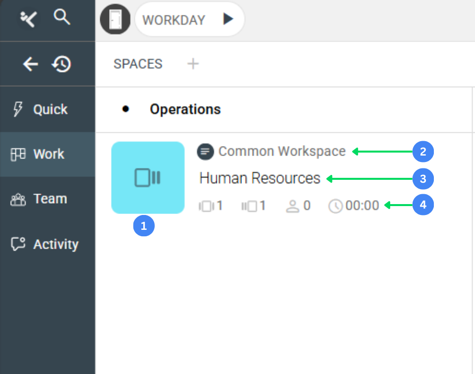 • Type label: Shows the Space type at the top (currently Common Workspace is the only type).