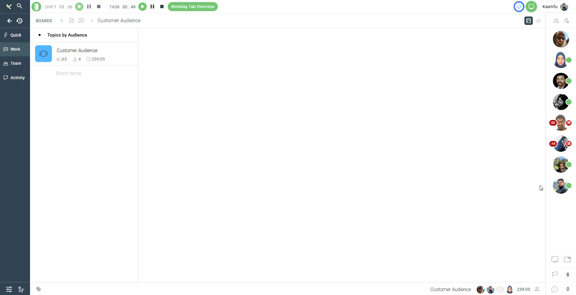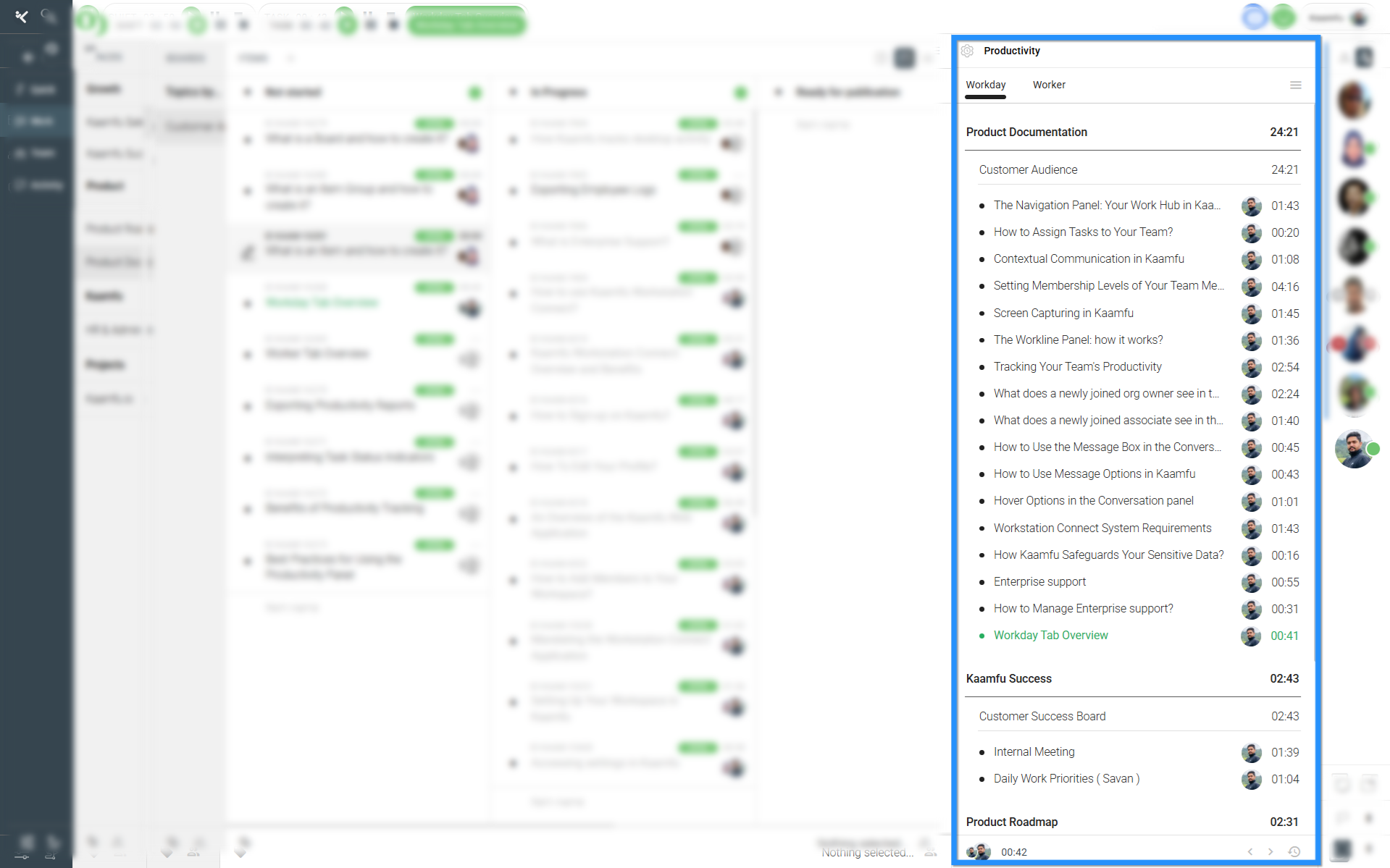 The Workday Tab in Kaamfu’s Productivity Panel provides a bird’s-eye view of all tasks being worked on across your organization. It allows managers to monitor progress in real-time and ensures visibility into every team member’s workflow.